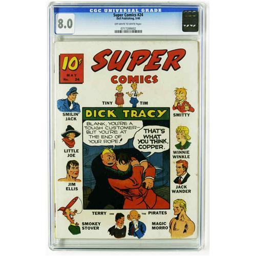 <B>Super Comics #24 (Dell, 1940) CGC VF 8.0 Off-white to white pages.</B></I> Dick Tracy cover featuring the Blank. Overstreet 2005 VF 8.0 value = $213. CGC census 12/05: 1 in 8.0, none higher.