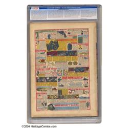 <B>Super Comics #3 (Dell, 1938) CGC FN 6.0 Off-white pages.</B></I> Features include Dick Tracy, Terry and the Pirates, Little Orphan Annie, and Gasoline Alley. This is the only copy of this issue that CGC has certified to date. Overstreet 2004 FN 6.0 value = $282. <BR><BR><B>Important notice:</B> Heritage usually auctions material at the rate of 200-250 lots per hour. On some occasions eBay Live bid software or the Internet may not be able to keep up with the pace of the auction. We recommend placing a realistic absentee bid now as insurance to avoid disappointment. Occasionally the auctioneer may eliminate or reject an eBay Live bid, and the auctioneer may also reopen a lot after the close of the eBay live bidding (usually because we missed an audience bid), and may reject your bid even if it shows you as the winning bidder. By bidding via eBay Live, you agree that Heritage may award the lot to another bidder at its sole discretion under the circumstances described above or any other reasonable circumstances. Since eBay bids are not shown to us until we open the lot on the floor, we treat those bids just like floor bids. In most cases the floor responds before the eBay bid is presented to us, due to Internet lag time, so for consistency we have made it a policy that floor bids are always considered first over tie eBay live bids. Also please note that all Heritage lots purchased through eBay Live carry a 20% Buyer's Premium. Please make sure you read the Terms and Conditions before you bid.