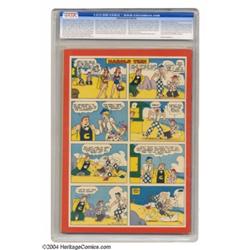 <B>Super Comics #86 File Copy (Dell, 1945) CGC VF/NM 9.0 Off-white pages.</B></I> This comic has an interesting cover image that features a letter to the American people, from prominent military leaders, encouraging investment in war bonds, with many famous comic characters lending their endorsement. To date, this is the only CGC-graded copy of this issue. Overstreet 2004 VF/NM 9.0 value = $99; NM- 9.2 value = $125. <BR><BR><B>Important notice:</B> Heritage usually auctions material at the rate of 200-250 lots per hour. On some occasions eBay Live bid software or the Internet may not be able to keep up with the pace of the auction. We recommend placing a realistic absentee bid now as insurance to avoid disappointment. Occasionally the auctioneer may eliminate or reject an eBay Live bid, and the auctioneer may also reopen a lot after the close of the eBay live bidding (usually because we missed an audience bid), and may reject your bid even if it shows you as the winning bidder. By bidding via eBay Live, you agree that Heritage may award the lot to another bidder at its sole discretion under the circumstances described above or any other reasonable circumstances. Since eBay bids are not shown to us until we open the lot on the floor, we treat those bids just like floor bids. In most cases the floor responds before the eBay bid is presented to us, due to Internet lag time, so for consistency we have made it a policy that floor bids are always considered first over tie eBay live bids. Also please note that all Heritage lots purchased through eBay Live carry a 20% Buyer's Premium. Please make sure you read the Terms and Conditions before you bid.
