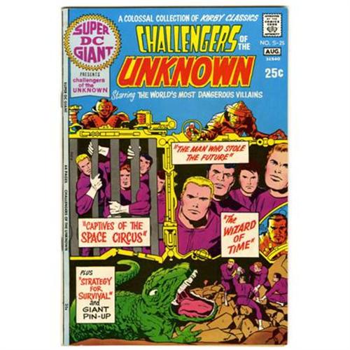 <B>Super DC Giant #25 Challengers of the Unknown (DC, 1971) Condition: NM-.</B></I> Featuring Challengers of the Unknown. Jack Kirby and Vince Colletta cover. Overstreet 2007 NM- 9.2 value = $38. <I> From the Fantastic Frank Collection.</B></I><BR><BR><b>Shipping:</b> Comics - Unslabbed (<a target="_blank" href="http://www.heritageauctions.com/common/shipping.php">view shipping information</a>)