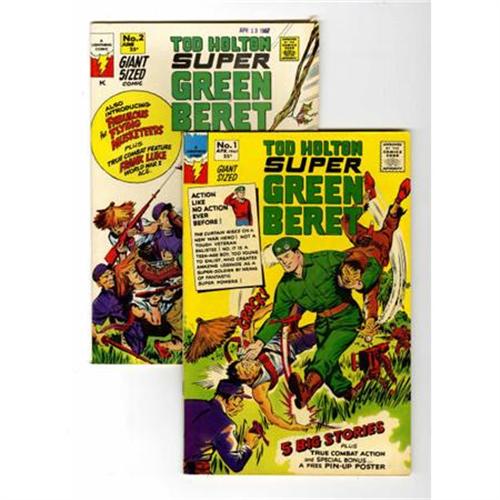 <B>Super Green Beret #1 and 2 Group (Lightning Comics, 1967) Condition: Average VF.</B></I> Includes #1 and #2. Both are 68 pages. Approximate Overstreet value for group = $50. <I> From the Madison Monk Collection.</B></I><BR><BR><b>Shipping:</b> Comics - Unslabbed (<a target="_blank" href="http://www.heritageauctions.com/common/shipping.php">view shipping information</a>)