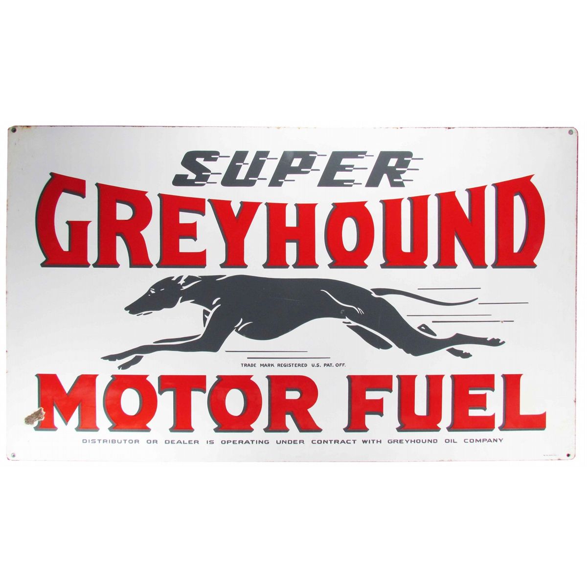 Super Greyhound Motor Fuel Porcelain Sign. Chip at bottom right otherwise very good condition. 58 X 34 inches.