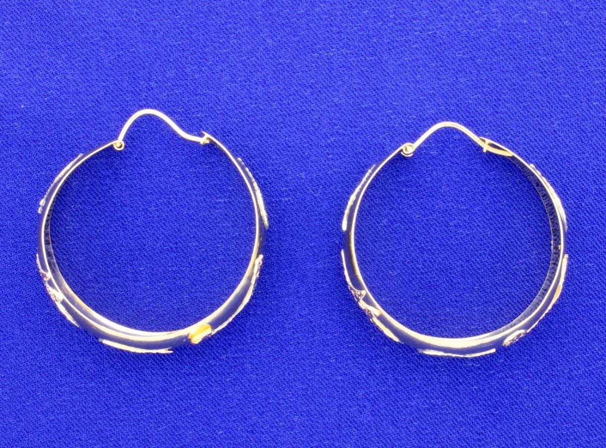 1.5" in diameter hoop earrings. These are not heavy and give a large look - almost 1/2" wide. 9.9g