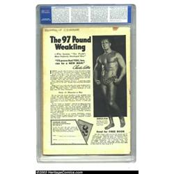 Super-Mystery Comics V3#4 Kurtzman File Copy (Ace, 1943) CGC FR 1.0 Brittle pages. A very early Harvey Kurtzman cover (his second) graces this Golden Age superhero comic. This copy has some obvious problems; the spine is starting to split and the pages are brittle. However, this was Kurtzman's own personal reader copy -- on the back, he wrote "Property of H. Kurtzman." An important and unique item for the Kurtzman collector, no matter what the condition of the book! And actually, aside from the spine, it looks pretty nice in its CGC holder. Included with this lot are copies of affidavits from both Adele Kurtzman, Harvey's widow, and Denis Kitchen, the literary and art agent for Kurtzman's estate, verifying and authenticating Harvey's signature on this book. Kurtzman signed this book at the time of publication, making it a rare and unique piece of comics history. Overstreet 2003 GD 2.0 value = $44. Important notice: Heritage usually auctions material at the rate of 200-250 lots per hour. On some occasions eBay Live bid software or the Internet may not be able to keep up with the pace of the auction. We recommend placing a realistic absentee bid now as insurance to avoid disappointment. Occasionally the auctioneer may eliminate or reject an eBay Live bid, and the auctioneer may also reopen a lot after the close of the eBay live bidding (usually because we missed an audience bid), and may reject your bid even if it shows you as the winning bidder. By bidding via eBay Live, you agree that Heritage may award the lot to another bidder at its sole discretion under the circumstances described above or any other reasonable circumstances. Also please note that all Heritage lots purchased through eBay Live carry a 20% Buyer's Premium. Please make sure you read the Terms and Conditions before you bid.
