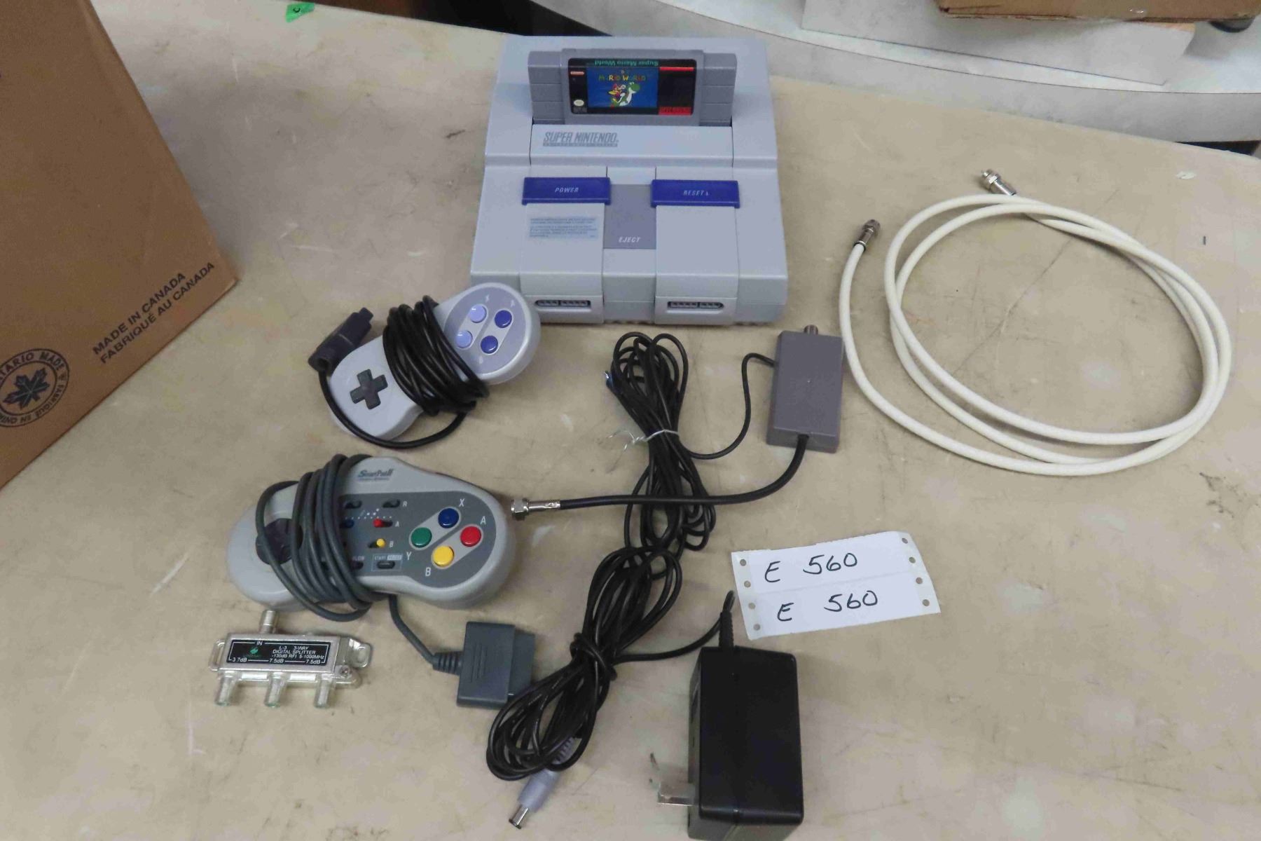 Super Nintendo Consol with 2 Controllers, Power Cable + Super Mario World
