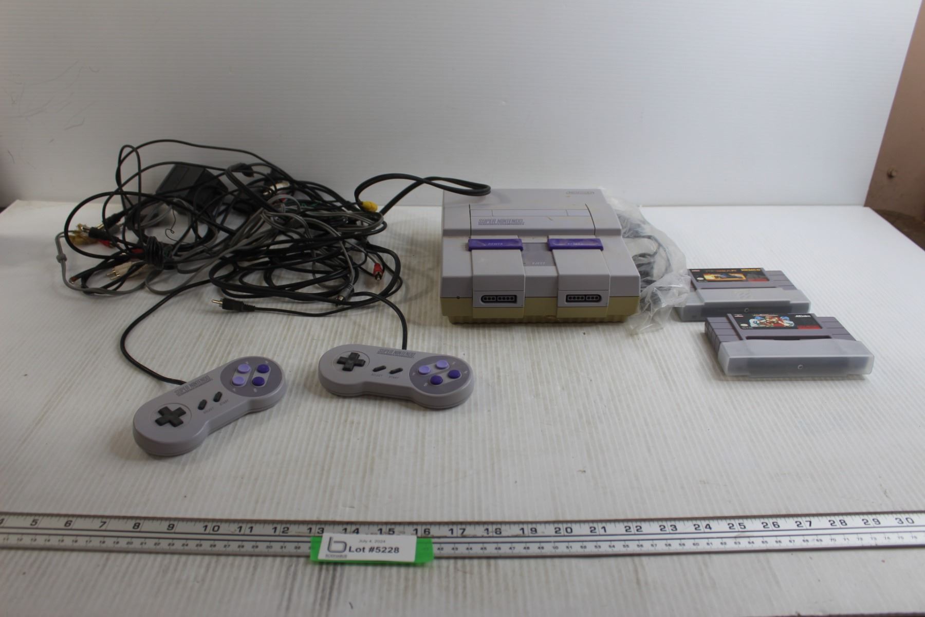 Super Nintendo Entertainment System, (2) Controllers, (2) Games, and Cords - Untested, As Is