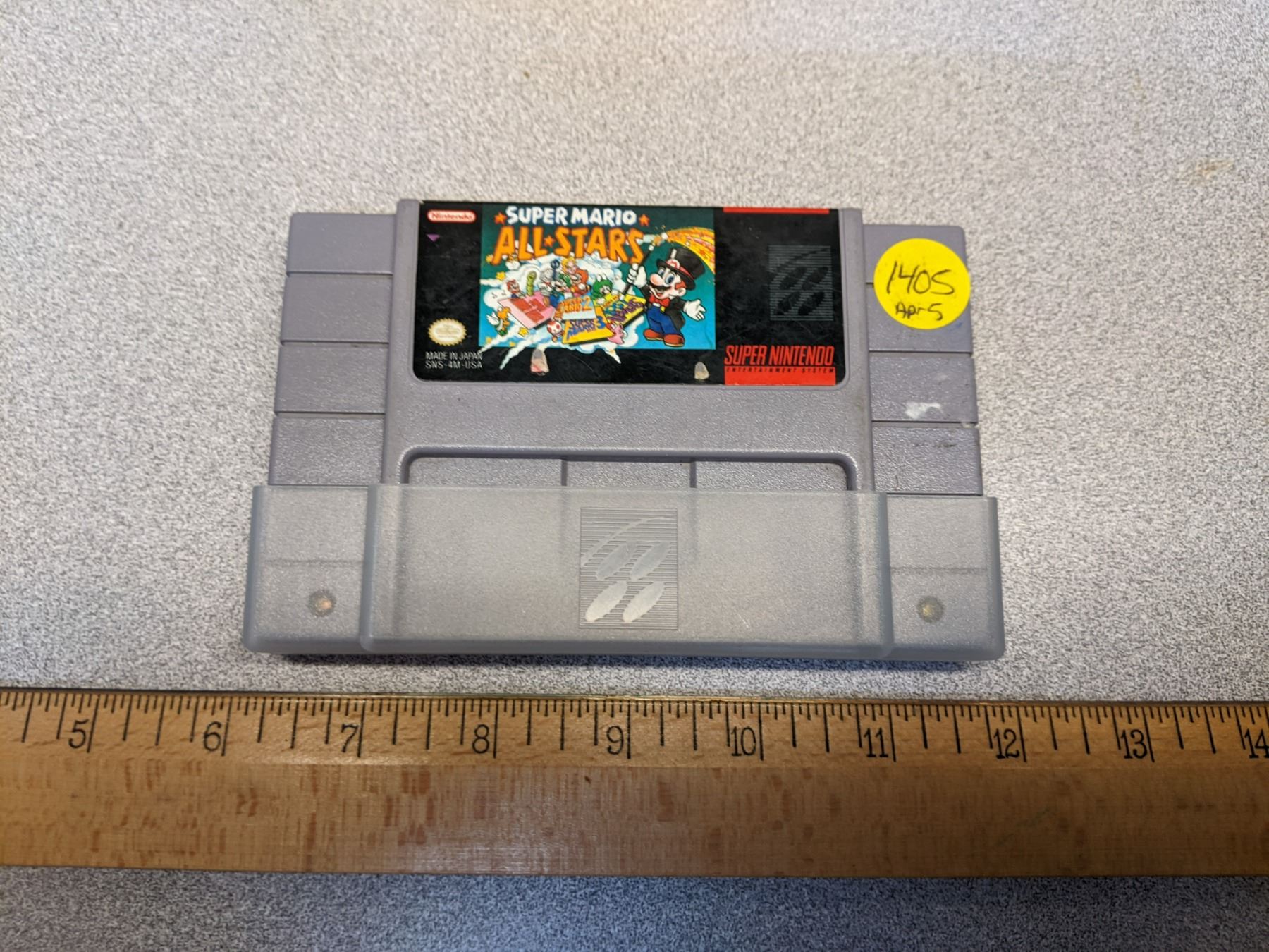 Super Nintendo (SNES) Super Mario All Stars cartridge/game pak with instruction booklet