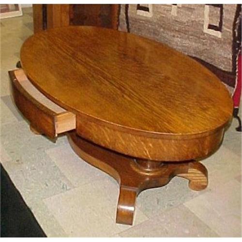 A true Gem! Super Quarter Sewn Oak Coffee Table with a Drawer...Circa 1910. Ready to display Condition. You will love this one....Must be picked up at the Antique Mall.