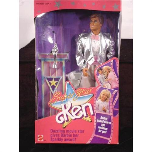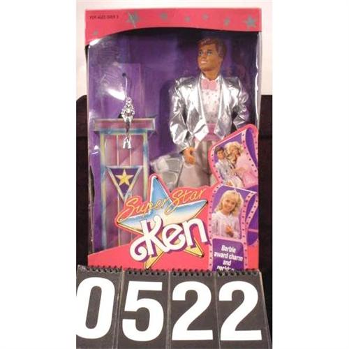 A Mattel Ken Doll. "Super Star Ken" with stars in his eyes and a award charm necklace. Doll is in perfect condition. Box measures 13" x 8" x 2" and weighs 13 ounces. [81]