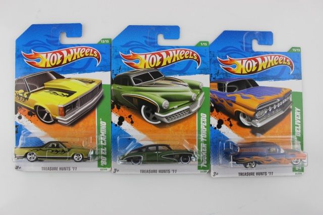 Up for auction is a lot of three Super Treasure Hunts that includes a defective car in Package! Theyre 6 every two boxes