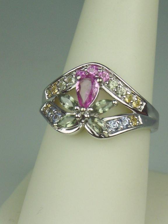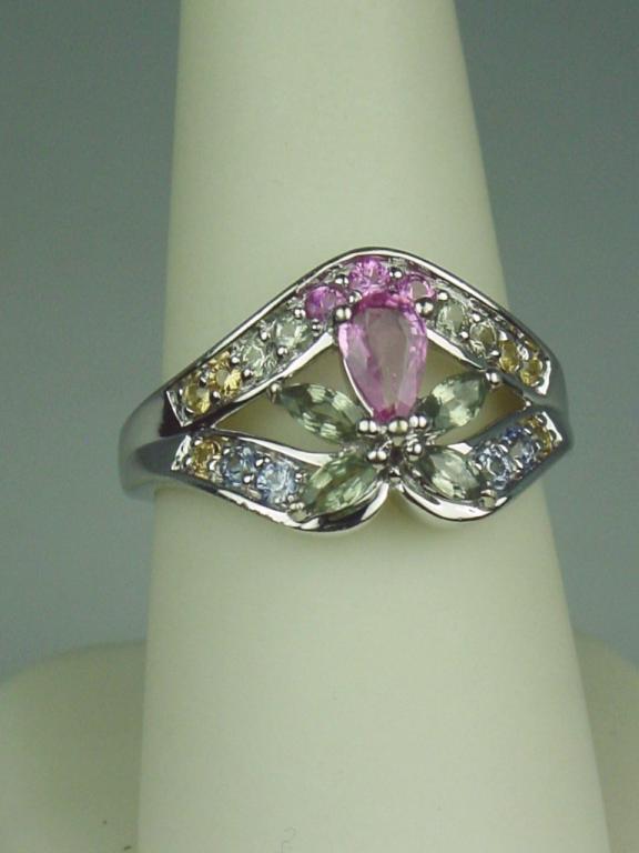 Superb 14 karat white gold ladies cluster design ring set with over 22 multi-colored sapphires weighing approx. 2.00 carats. Retail $1,250.00 Estimate $400-$800