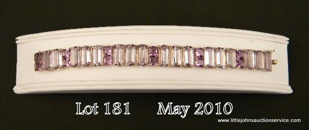 Superb 14 karat yellow gold ladies custom made bracelet set with 30 Amethyst stones weighing approx. 90.00 carats. Retail $2,250.00 Estimate $800-$1,200 Very labor intensive.