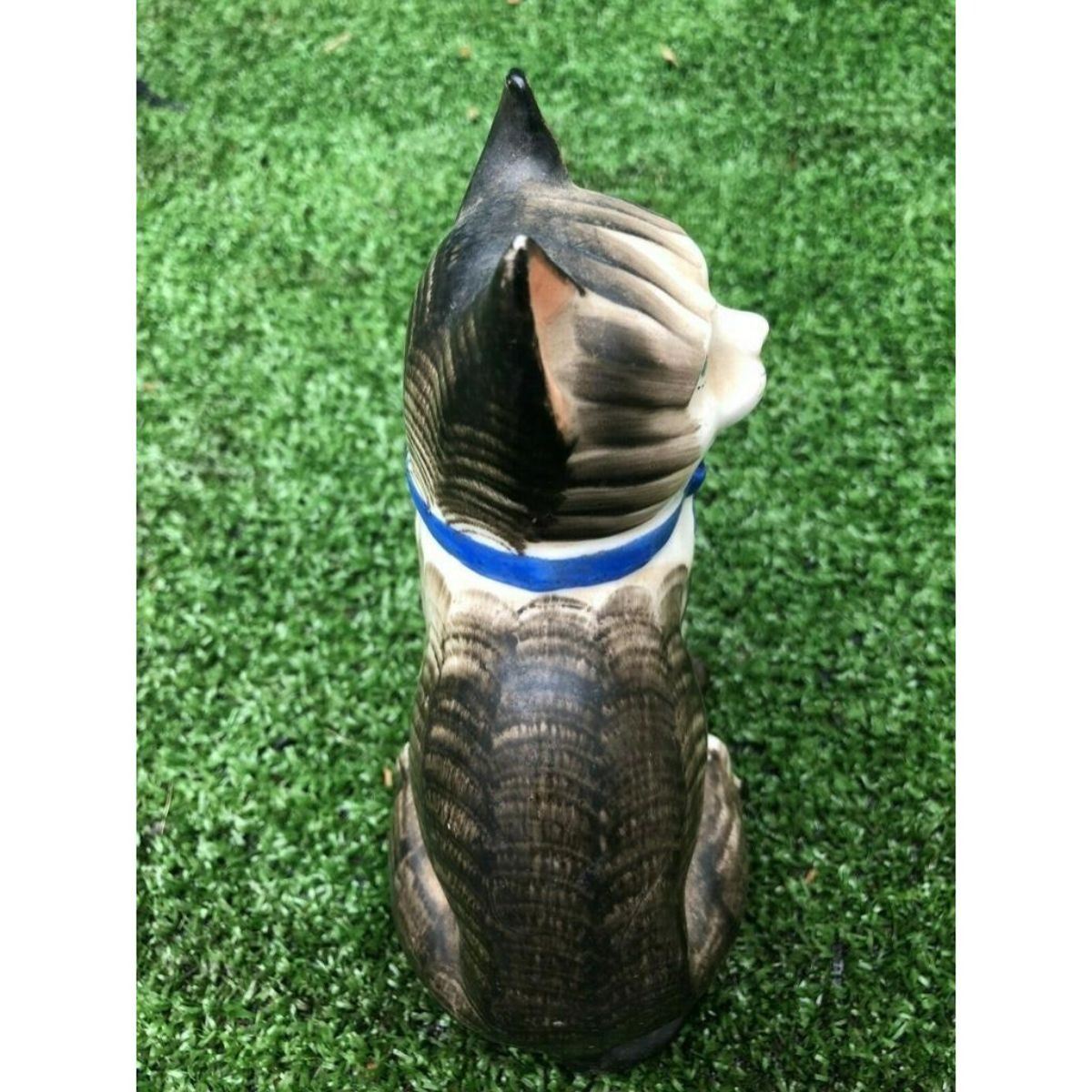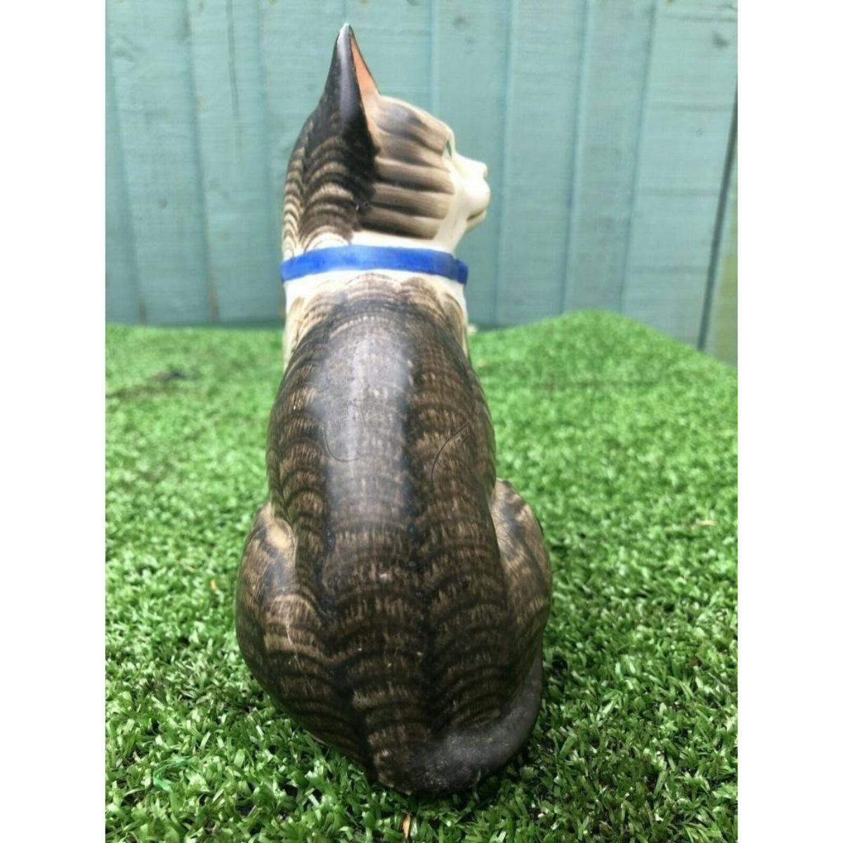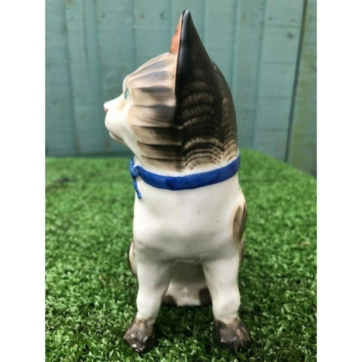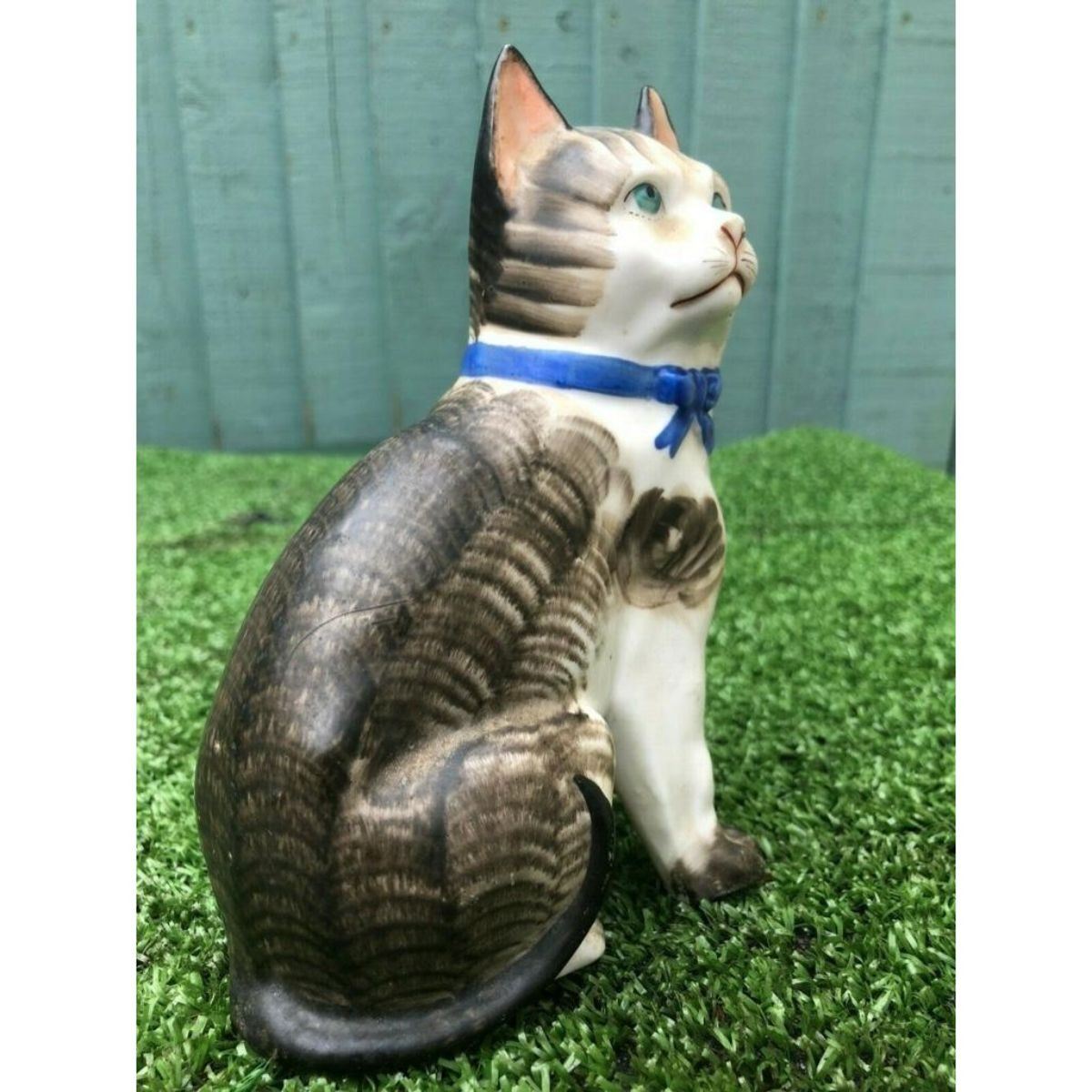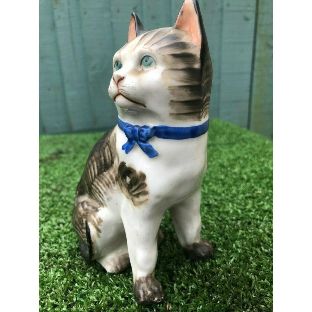 Superb c1880's Victorian English Staffordshire porcelain seated cat figure with separate front legs. Wonderful portrayal with vivid coloring & decoration. 6 1/4" H. 4" X 2 3/4" base.Â