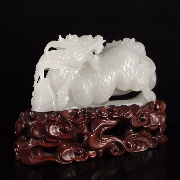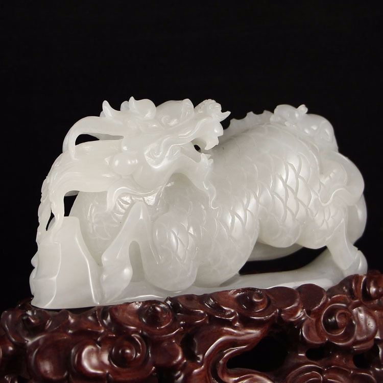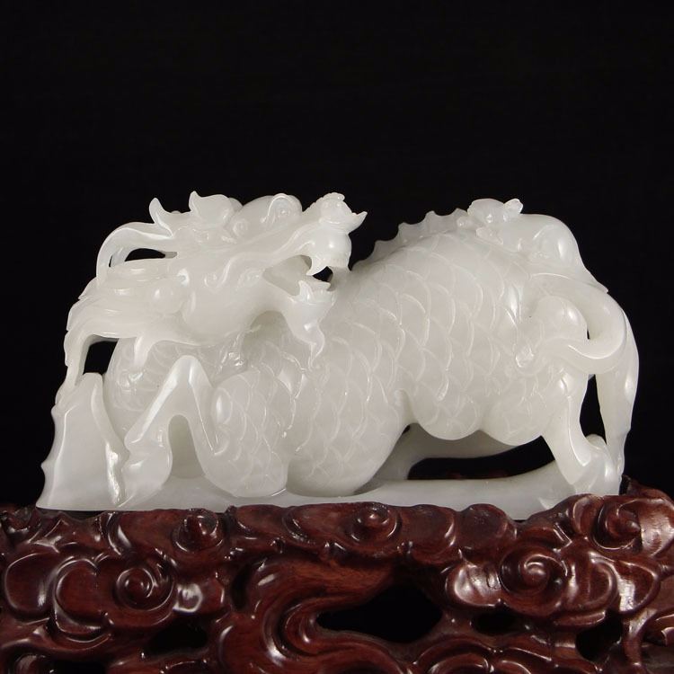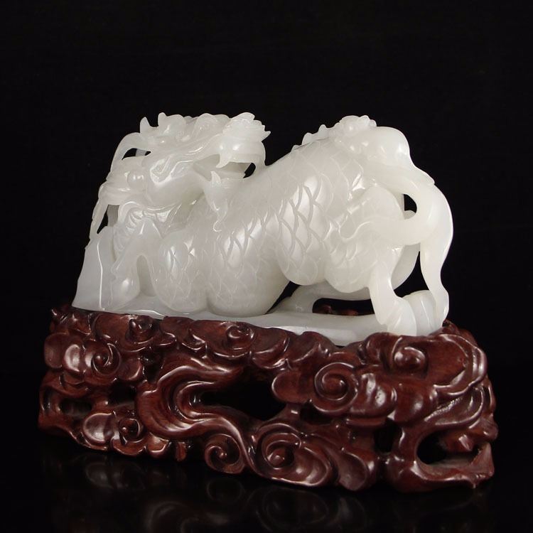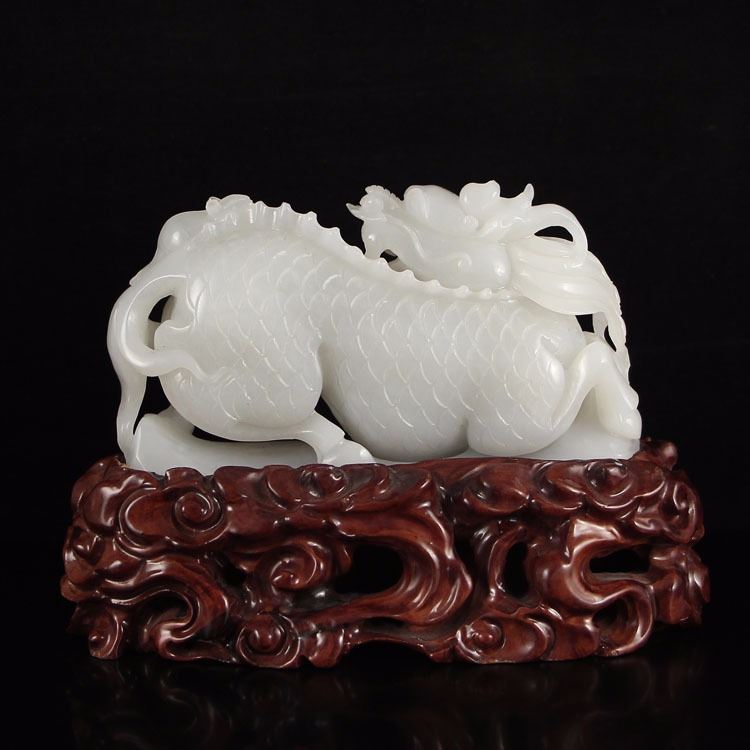 Superb Chinese Hetian Jade Statue - Kylin Dimension: 150x77x37(mm) 5.91x3.03x1.46(inches) Weight 1.55 lbs/702 g The total weight does not include the base. The base is included after you have won the auction.