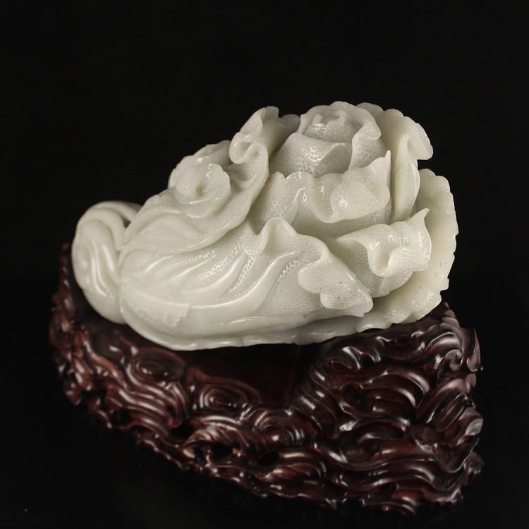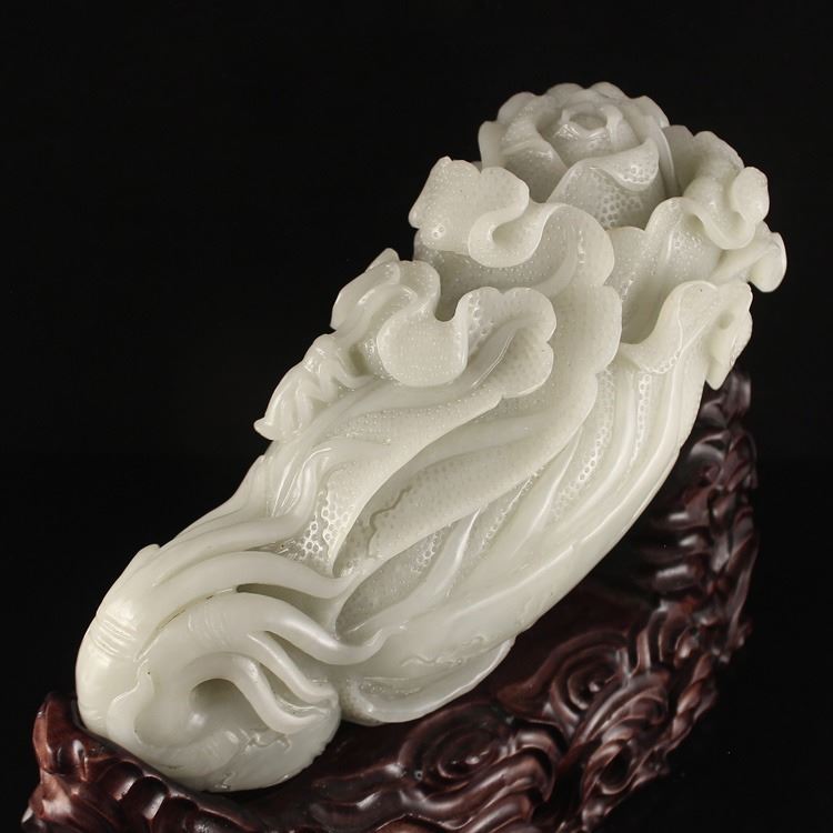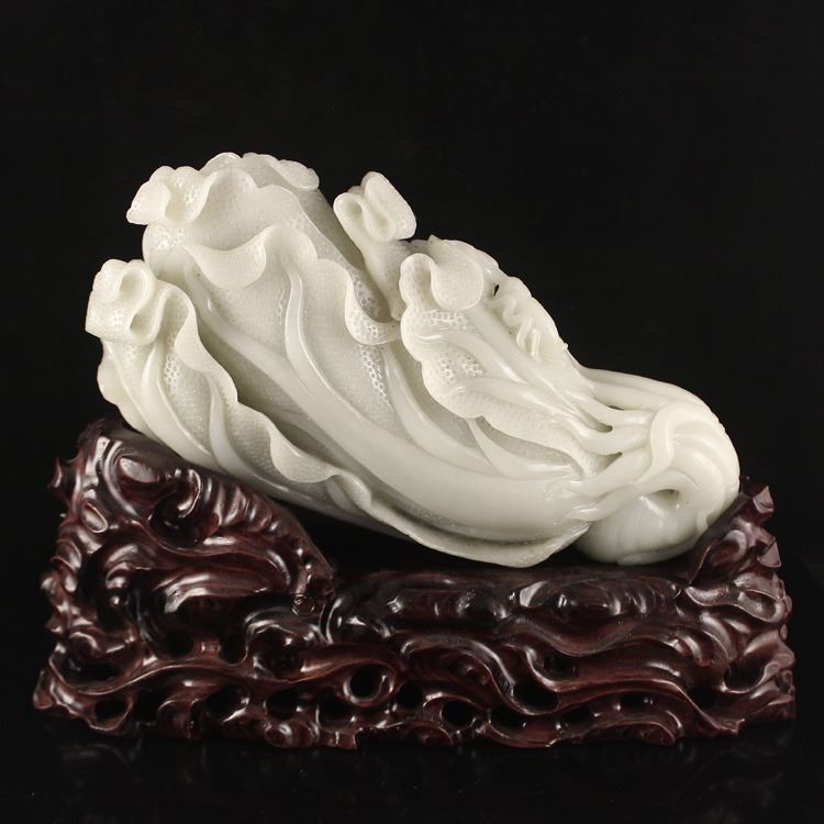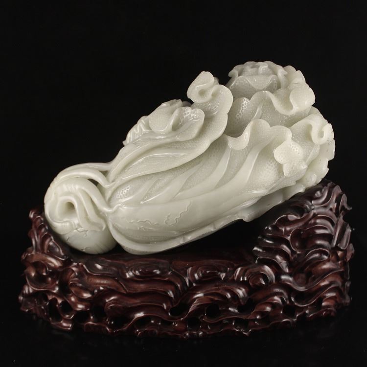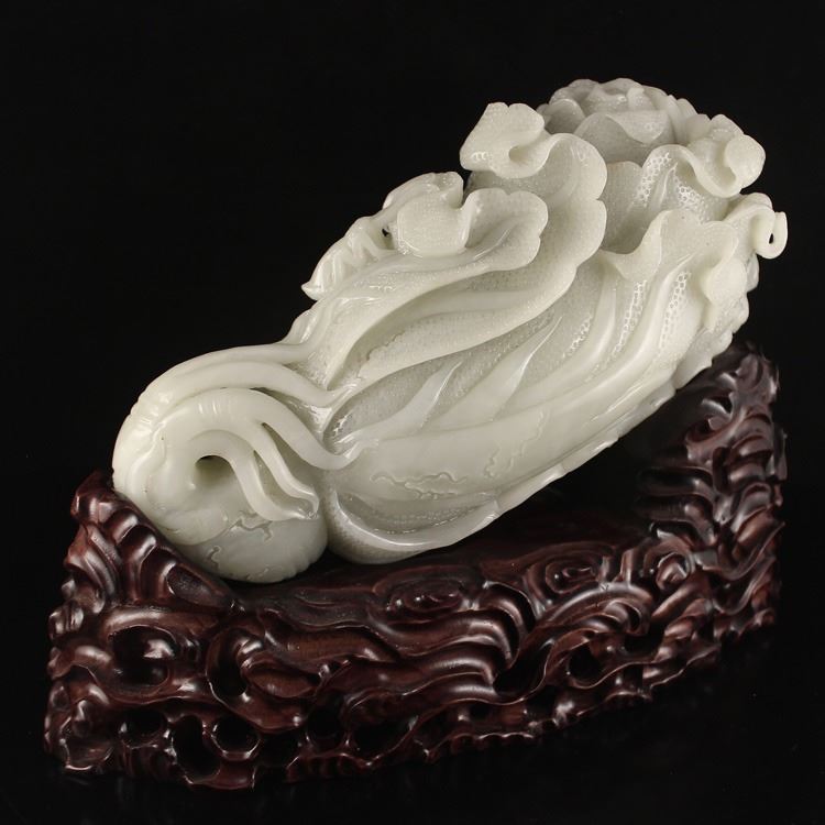 Superb Chinese Natural Hetian Jade Statue - Fortune Cabbage Dimension:220x115x78(mm)8.66x4.53x3.07 (inches) Weight 5.27 lbs/2389 g The total weight does not include the base. The base is included after you have won the auction.
