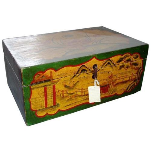 <tr><td>Title:Superb Chinese Qing Dy. Wood Painting Trunk</td></tr>