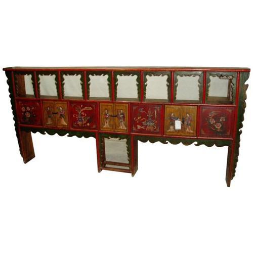 The antique furniture we take on for you is a piece of splendid Qing dynasty's altar table made of wood collected from Hebei province in china.A wonderful piece for a room that can hold it.At the beginning of the Qing Dynasty, furniture followed Ming patterns and styles.Qing Furniture showed its own uniqueness with the absorption of western art. It was larger in size with grandeur and pageantry.Engraving was a popular and important means of furniture decoration. The subjects range from auspicious character patterns, to geometric patterns and scenes in nature with animals, mountains and waters, flowers and grass. Color painting, especially gold painting, was widely used.Commercial symbols emerged, such as patterns concerning money and fortune.To later Qing furniture has less engraving ,instead ,inlays of stone, which catch the eye more easily than exquisite engraving, are used to tell of the luxurious lifestyle of the owner. In addition, color and gold painting become the vogue depicting the preference for gaudiness by the wealthy.