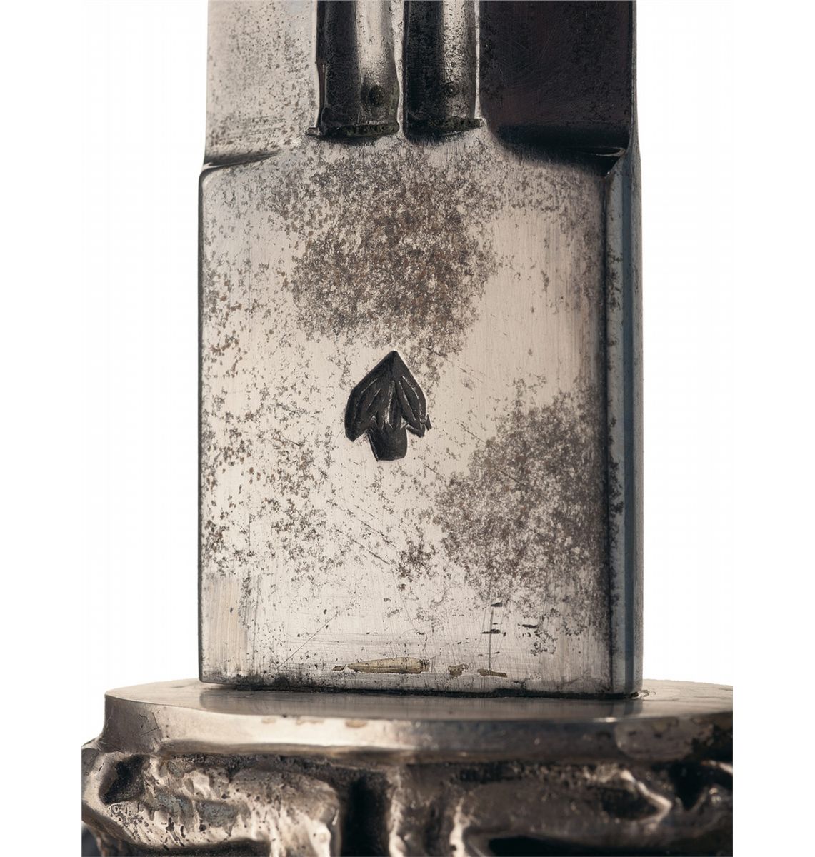 Condition: Excellent. The blade show some mild spotting and areas of brown patina, along with a few mild handling marks. An attractive, well aged patina is forming on the silver, concentrated in the lower, protected areas, with some minor handling marks. A fantastic piece of European craftsmanship, showcasing skills of both the blade makers and silversmiths involved.
