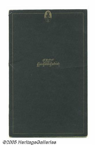 <B>Superb Large Bachrach Studio Photo of Calvin Coolidge</B></I> Dated 1918 in pencil and hand-signed "Bachrach." Comes in elegant original black folder, gold lettered, "A Portrait by Louis Fabian Bachrach." The photo itself is near-mint, and the folder is excellent but for partial separation along the spine. The Massachussetts-based studio specializes in portrait photography. It is still in existance under fourth-generation management, and has photographed famous Americans as recent as George Bush and Colin Powell. This is a superb, large Coolidge studio image. Overall 10" x 16.5". Lot:263