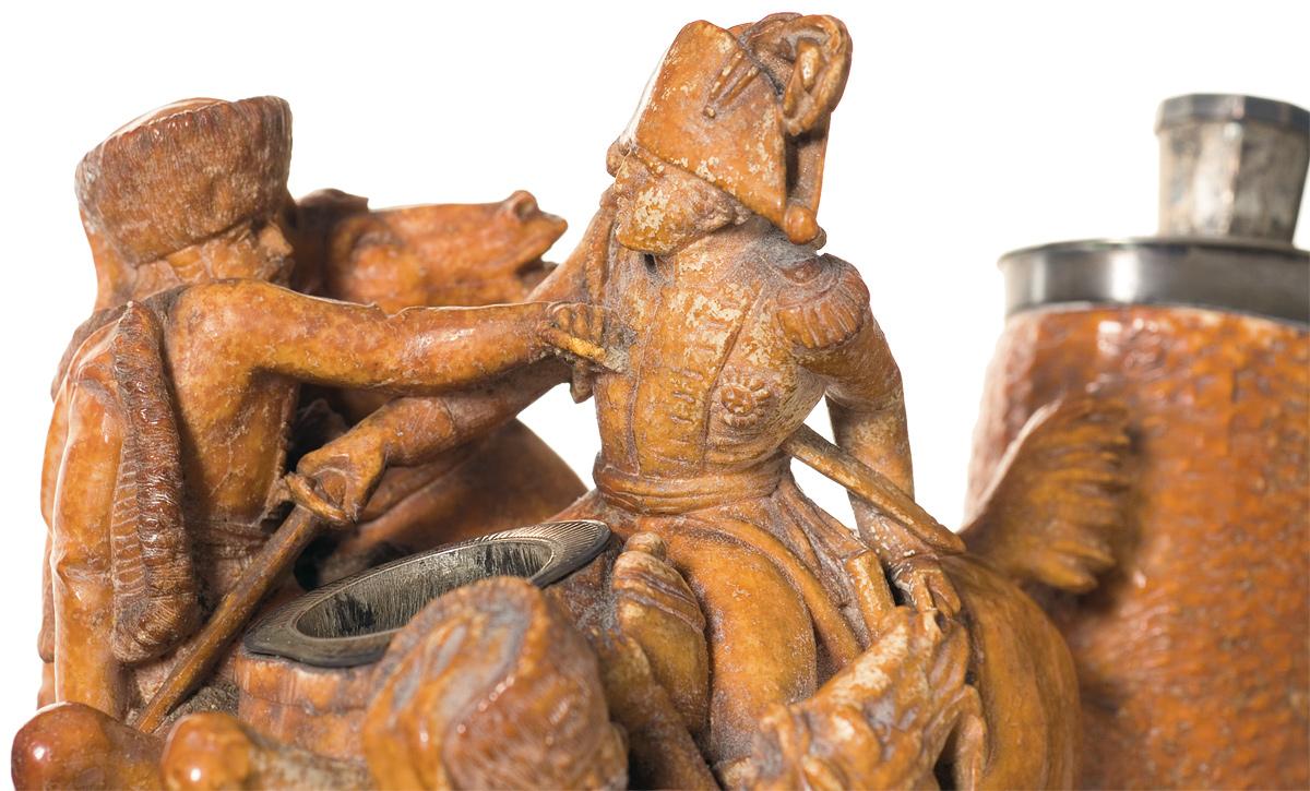 Superb Silver Fitted Massive Meerschaum Pipe, Depicting a Battle from Napoleon's Invasion of Russia