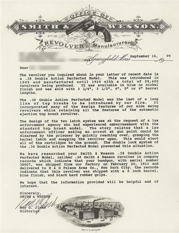 Superb Smith & Wesson Perfected Model 38 Double Action Top Break Revolver with Factory Letter