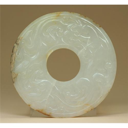 This bi was made of a pure and translucent white jade stone. It has finest carving and very good polish.