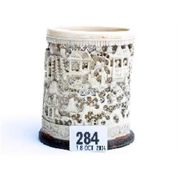 Superb quality oriental ivory carving 4" high set on small wooden base
