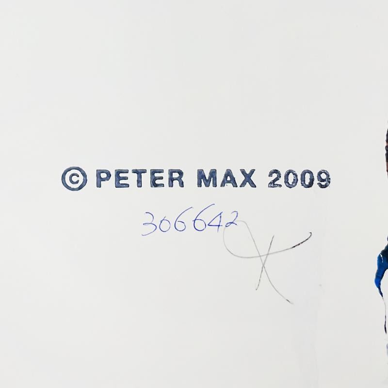 "Superbowl XXX" is a one-of-a-kind acrylic mixed media on paper, hand signed by Peter Max. The piece comes custom framed with a backside cutout to display Peter Max Studio registration number 306642 certifying authenticity. Measures approx. 48.5" x 36.5" (frame), 36" x 24" (image). This item requires special handling and may have a longer than usual turnaround.