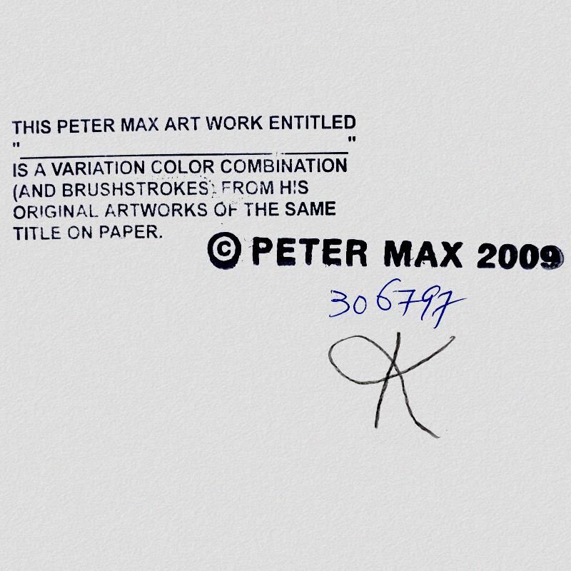 "Superbowl XXX" is a one-of-a-kind mixed media on paper, hand signed by Peter Max. The piece comes custom framed with a backside cutout to display Peter Max Studio registration number 306797 certifying authenticity. Measures approximately 42" x 30" (frame), 36" x 24" (image). This item requires special handling and may have a longer than usual turnaround.