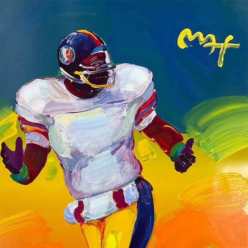 "Superbowl XXXI" is a one-of-a-kind acrylic mixed media on paper, hand signed by Peter Max. The piece comes custom framed with a backside cutout to display Peter Max Studio registration number 305796 certifying authenticity. Measures approx. 48.5" x 36.5" (frame), 36" x 24" (image).