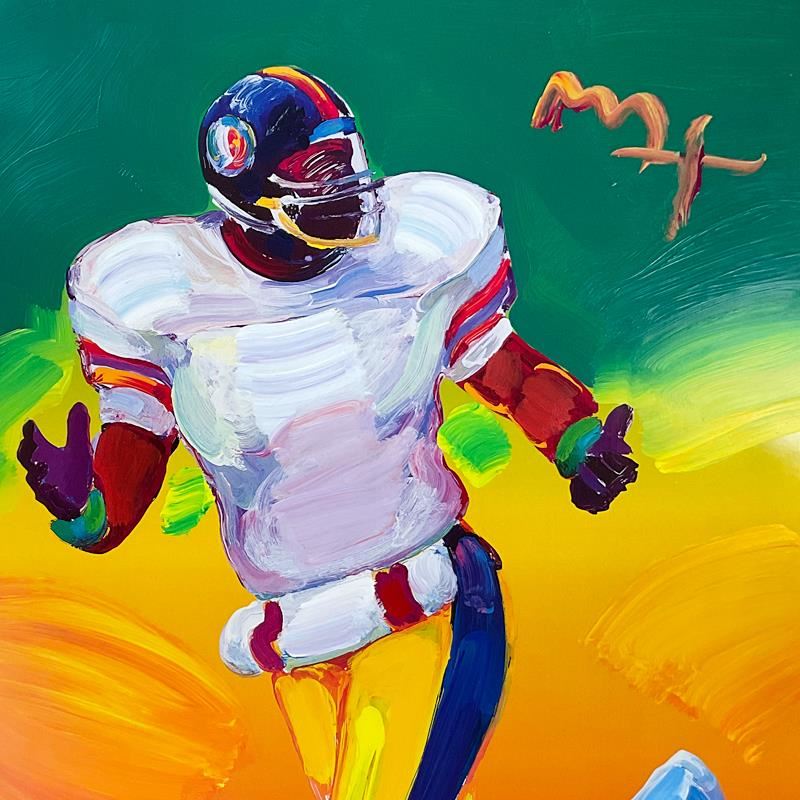 Superbowl XXXI is a one-of-a-kind acrylic mixed media on paper, hand signed by Peter Max. The piece comes custom framed with a backside cutout to display Peter Max Studio registration number 305794 certifying authenticity. Measures approx. 48.5 x 36.5 (frame), 36 x 24 (image).