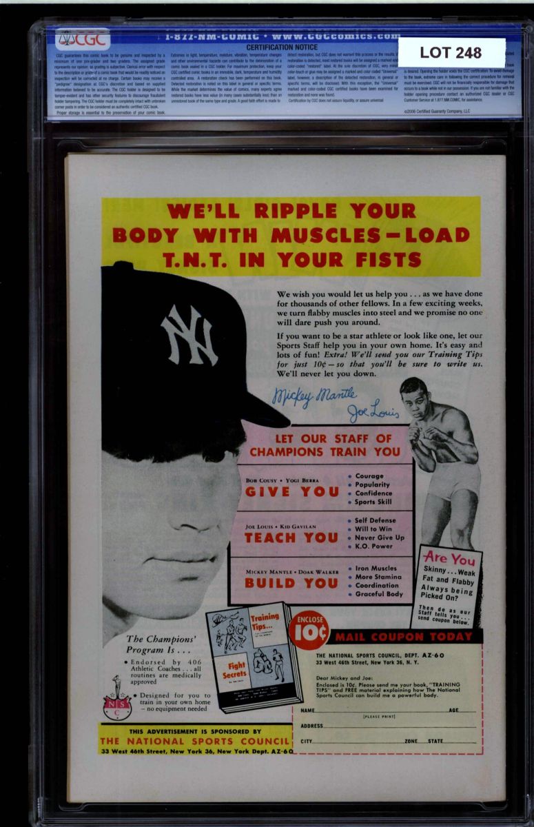 The Auctioneer has reserved the right to reject any and all bids, and to bid at the auction. Auctioneers Auctions are not on approval. Auctioneer does not allow certified material to be returned because of possible differences of opinion with respect to the grade offered by any third party organization, dealer, or service. Absolutely no guarantee of grade is offered for un-certified property sold and subsequently submitted to a third-party grading service. There will be no exceptions to this policy. Under extremely limited circumstances, (e.g. gross cataloging error) a purchaser, who did not bid from the floor, may request Auctioneer to evaluate voiding a sale; such request must be made in writing detailing the alleged gross error, and submission of the lot to the Auctioneer must be pre-approved by the Auctioneer. Bidder must notify Auctioneer in writing of such request within three (3) days of the non-floor bidder receipt of the lot. Any lot that is to be evaluated must be in our offices within 30 days after Auction. Grading does not qualify for this evaluation process nor do such complaints constitute a basis to challenge the authenticity of a lot. AFTER THAT 30-DAY PERIOD, NO LOTS MAY BE RETURNED FOR REASONS OTHER THAN AUTHENTICITY. Lots returned must be housed intact in the original holder. No lots purchased by floor Bidders may be returned (including those Bidders acting as agents for others). Late remittance for purchases may be considered just cause to revoke all return privileges. B: Auctions conducted solely on the Internet have a THREE (3) DAY RETURN POLICY: Lots paid for within seven days of the Auction closing are sold with a three (3) day return privilege. You may return lots under the following conditions: Within three days of receipt of the lot, you must first notify Auctioneer by contacting Client Service by phone (314-680-8599) or e-mail (moundcityauctions@gmail.com), and immediately mail the lot(s) fully insured to the attention of Returns, Mound City Auctions 1081 Teson Rd. Hazelwood, MO. 63042. Lots must be housed intact in their original holder and in their original condition. You are responsible for the insured, safe delivery of any lots. Auctioneer will not be responsible for lots returned in non-registered mail or lots returned without prior authorization per section B. A non-negotiable return fee of 5% of the purchase price ($10 per lot minimum) will be deducted from the refund for each returned lot or billed directly. Postage and handling fees are not refunded. After the three-day period (from receipt), no items may be returned for any reason. Late remittance for purchases revokes all Return-Restock privileges. C: Bidders who have inspected the lots prior to the auction will not be granted any return privileges. D: Comic books sold referencing a third-party grading service are sold “as is” without any express or implied warranty. Certain warranties may be available from the grading services and the Bidder is referred to them for further details: Certified Guaranty Company, LLC. (CGC), P.O. Box 4738, Sarasota, FL 34230. E: Bidders who intend to challenge authenticity or provenance of a lot must notify Auctioneer in writing within thirty (30) days of the Auctions conclusion. In the event Auctioneer cannot deliver the lot or subsequently it is established that the lot lacks title, provenance, authenticity, or other transfer or condition issue is claimed, Auctioneer's liability shall be limited to rescission of sale and refund of purchase price; in no case shall Auctioneer's maximum liability exceed the high bid on that lot, which bid shall be deemed for all purposes the value of the lot. After one year has elapsed, Auctioneer's maximum liability shall be limited to any commissions and fees Auctioneer earned on that lot. F: All comics are guaranteed genuine, but are not guaranteed as to grade, since grading is a matter of opinion, an art and not a science, and therefore the opinion rendered by the Auctioneer or any third party grading service may not agree with the opinion of others (including trained experts), and the same expert may not grade the same item with the same grade at two different times. G: Since we cannot examine encapsulated comics, they are sold “as is”without our grading opinion, and may not be returned for any reason. Auctioneer shall not be liable for any patent or latent defect or controversy pertaining to or arising from any encapsulated collectible. In any such instance, purchaser's remedy, if any, shall be solely against the service certifying the collectible. H: Due to changing grading standards over time, differing interpretations, and to possible mishandling of items by subsequent owners, Auctioneer reserves the right to grade items differently than shown on certificates from any grading service that accompany the items. Auctioneer also reserves the right to grade items differently than the grades shown in the prior catalog should such items be reconsigned to any future auction. I: Although consensus grading is employed by most grading services, it should be noted as aforesaid that grading is not an exact science. In fact, it is entirely possible that if a lot is broken out of a plastic holder and resubmitted to another grading service or even to the same service, the lot could come back with a different grade assigned. J: Certification does not guarantee protection against the normal risks associated with potentially volatile markets. The degree of liquidity for certified collectibles will vary according to general market conditions and the particular lot involved. For some lots there may be no active market at all at certain points in time."