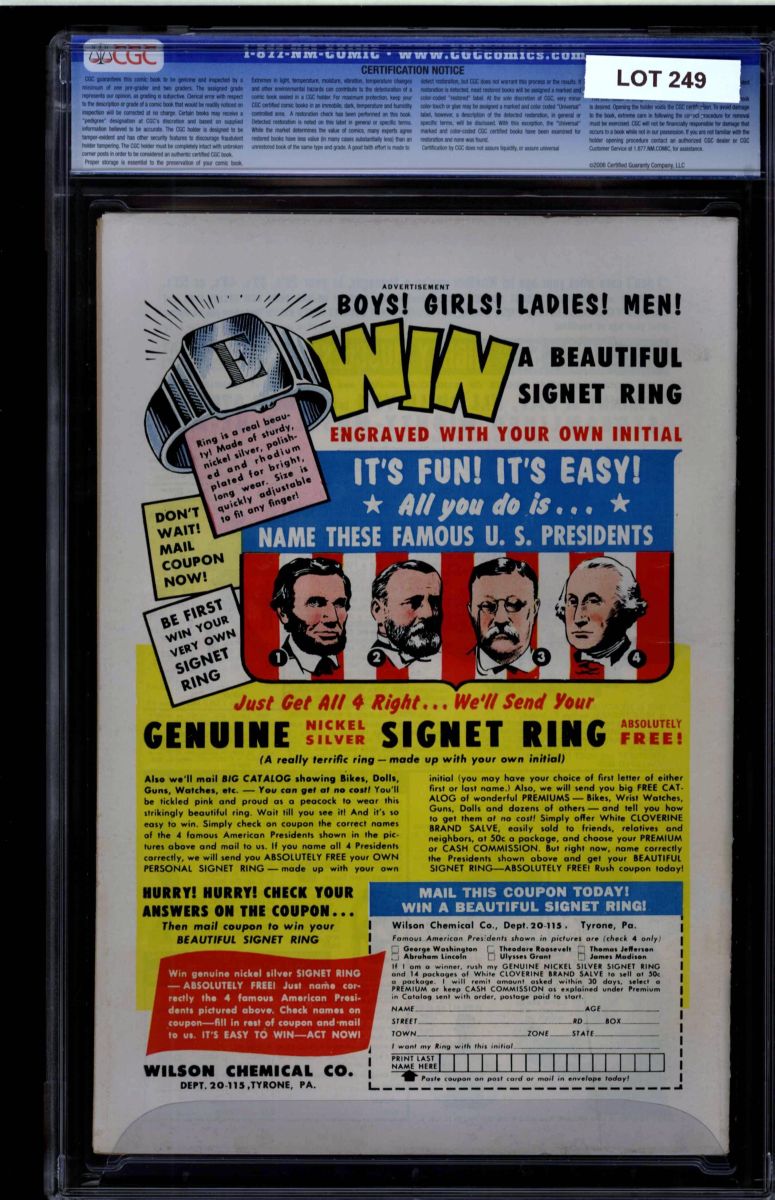 Full page ad for Green Lantern #1. 1st appearance of Bizarro Krypto. Overstreet 2009 NM 9.2 value = $210. CGC census: 1 at 9.2, none higher!