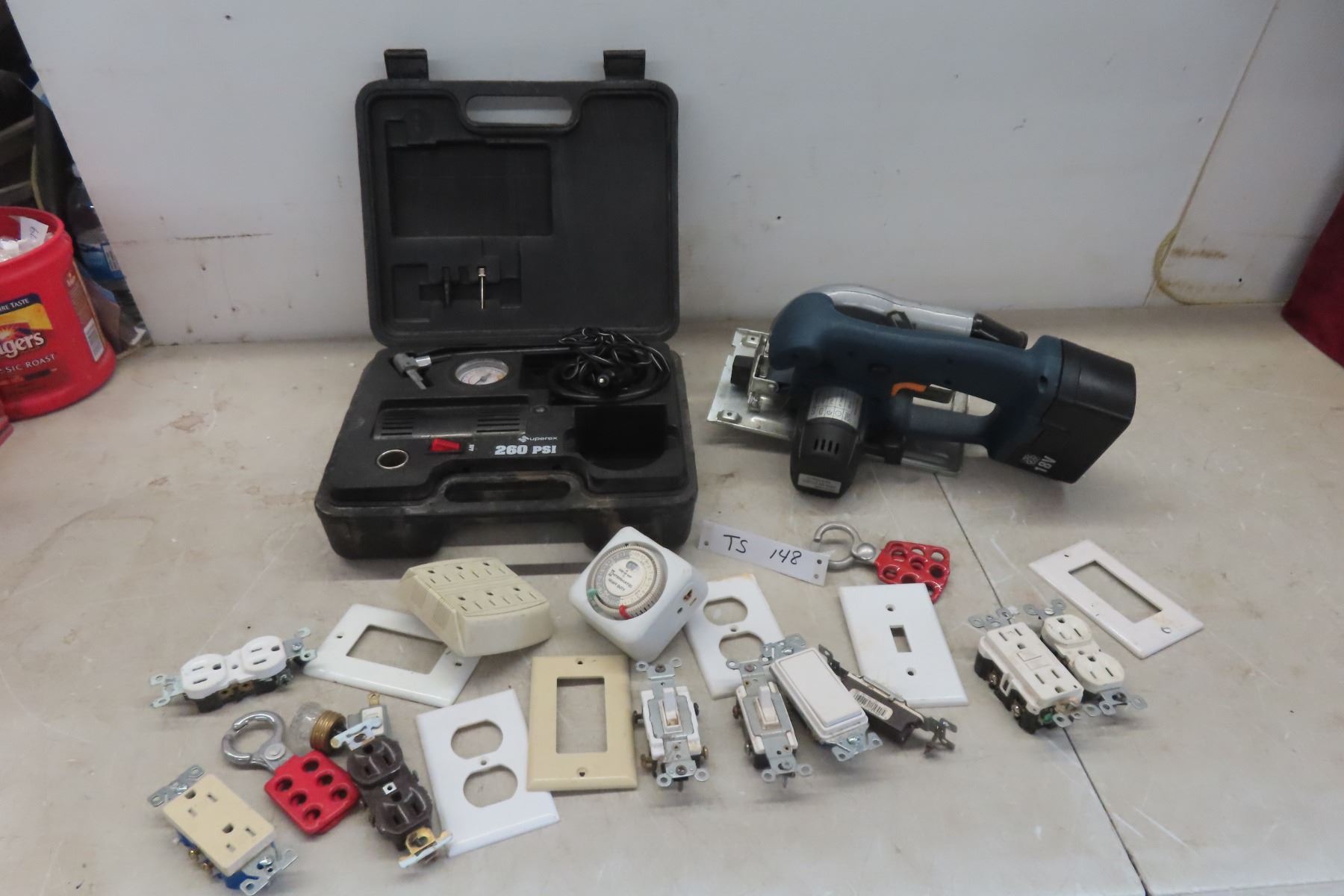 Superex 12V Air Compressor, 18V Cordless Circular Saw with Battery No Charger, Timer Switches Receptacles