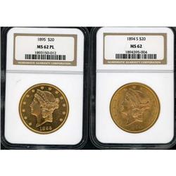 Includes: 1894 S NGC MS62, 1895 MS62 PL. Two unusually choice examples available together here. The 1894-S is very PQ with a possibility of being MS63