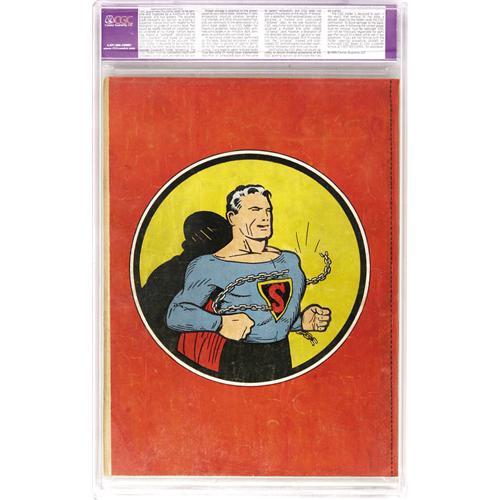 <B>Superman #1 (DC, 1939) CGC Apparent GD/VG 3.0 Extensive (P) Cream to off-white pages.</B></I> This is the fourth most-valuable comic of all according to Overstreet, and it's a milestone in the history of comics. Though Superman had been very well-received in the pages of <B>Action Comics</B></I>, it was unheard-of to devote an entire series to a character who was created for the comic books and didn't come from the cartoons or newspaper strips. DC risked it, and the series was a smash hit. The issue's famous cover is by Superman's co-creator Joe Shuster. Since restored copies of this issue are the rule rather than the exception, we suggest you give this professionally restored specimen your full consideration. CGC notes, "Restoration includes: color touch, pieces added, tear seals, cleaned, reinforced." Overstreet 2006 GD 2.0 value = $18,250; VG 4.0 value = $36,500. <I>From the collection of Patrick Marchbanks.</B></I> <BR><BR><B>Important notice:</B> Heritage usually auctions material at the rate of 200-250 lots per hour. On some occasions eBay Live bid software or the Internet may not be able to keep up with the pace of the auction. We recommend placing a realistic absentee bid now as insurance to avoid disappointment. Occasionally the auctioneer may eliminate or reject an eBay Live bid, and the auctioneer may also reopen a lot after the close of the eBay live bidding (usually because we missed an audience bid), and may reject your bid even if it shows you as the winning bidder. By bidding via eBay Live, you agree that Heritage may award the lot to another bidder at its sole discretion under the circumstances described above or any other reasonable circumstances. Since eBay bids are not shown to us until we open the lot on the floor, we treat those bids just like floor bids. In most cases the floor responds before the eBay bid is presented to us, due to Internet lag time, so for consistency we have made it a policy that floor bids are always considered first over tie eBay live bids. Also please note that all Heritage lots purchased through eBay Live carry a 22.5% Buyer's Premium. Please make sure you read the Terms and Conditions before you bid. This lot is being auctioned in conjunction with a live floor auction by Heritage Auction Galleries. All final auction and invoice information will be supplied by Heritage Auction Galleries, and all other information should be considered preliminary. Lot:41001 <BR><BR><B>Winning Notification and Billing:</B> After the FINAL session in this auction is complete, Heritage will send e-mail and snail mail invoices. This process normally takes several days. All final auction and invoice information will be supplied by Heritage Auction Galleries, and all other information should be considered preliminary. <BR><BR>This auction will be conducted on a live auction floor and over the Internet through eBay Live. If you choose to place an absentee bid, please take a moment to <font color='#0000ff'><u><a href='http://pages.ebay.com/liveauctions/help/before/laabsentee.html'>learn how eBay Live absentee bidding works</a></u></font><font color='#000000'>