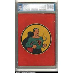 Superman #1 (DC, 1939) CGC GD- 1.8 Cream pages. Here is one of the most important books of all time. Superman #1 is the fourth most-valuable comic book ever, and the Near Mint price jumped 20% in the 2002 Overstreet. This book will always be one of the holy grails of comic book collectors all over the world. Superman receives a new two page origin with this premiere issue, and it has an incredible back cover pin-up, which was the first one in comics. The importance of this book can't be overstated, and anyone who looks at it knows that at first glance. This happens to be probably the nicest-looking low-grade copy that you will see. It appears to be in the VG range, with no chunks missing, no major creasing, and just some small tears at the right hand edge. The grade falls on the low side of GD because the cover is completely split at the spine. Overstreet 2002 GD 2.0 value = $15,000. Important notice: We expect to be auctioning lots at the rate of 200-250 per hour. Sometimes eBay Premier live bid software cannot keep up with that pace, so we strongly recommend that you place a realistic proxy bid now as insurance to avoid disappointment. Also please note that all Heritage/CAA lots purchased through eBay Premier carry a 20% Buyer's Premium.
