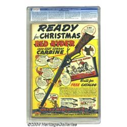 Superman #14 (DC, 1942) CGC VF- 7.5 Light tan to off-white pages. The votes are in; Fred Ray's ultra-patriotic cover is a "classic," and one of the most striking of all the early issues of the title. Collectors know how hard it is to find a copy in this grade and better, and CGC's census confirms that -- just one of eighteen unrestored copies has earned a higher grade than VF 8.0 to date. Overstreet 2003 VF 8.0 value = $1,950. Important notice: Heritage usually auctions material at the rate of 200-250 lots per hour. On some occasions eBay Live bid software or the Internet may not be able to keep up with the pace of the auction. We recommend placing a realistic absentee bid now as insurance to avoid disappointment. Occasionally the auctioneer may eliminate or reject an eBay Live bid, and the auctioneer may also reopen a lot after the close of the eBay live bidding (usually because we missed an audience bid), and may reject your bid even if it shows you as the winning bidder. By bidding via eBay Live, you agree that Heritage may award the lot to another bidder at its sole discretion under the circumstances described above or any other reasonable circumstances. Since eBay bids are not shown to us until we open the lot on the floor, we treat those bids just like floor bids. In most cases the floor responds before the eBay bid is presented to us, due to Internet lag time, so for consistency we have made it a policy that floor bids are always considered first over tie eBay live bids. Also please note that all Heritage lots purchased through eBay Live carry a 20% Buyer's Premium. Please make sure you read the Terms and Conditions before you bid.