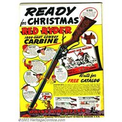Superman #14 (DC, 1942). This issue is a perennial favorite among collectors. In and of itself, it has one of the very finest Golden Age covers, and is universally held to be a true classic. Additionally, it hits on many sub-genres of collecting, including black covers, patriotic covers, flag covers, Superman covers, Fred Ray covers...the list goes on and on. This particular copy is beautiful, very possibly the prettiest we have ever seen. The field is a solid matte black, yet retains a rich velvety luster. The palette used consists of all primary colors, resulting in a very high-impact composition. Overall the book displays a freshness seldom seen in a 60-plus year-old comic, with outstanding page quality. There is a reading crease that runs the length of the spine, and a 3/4" corner crease at the bottom right of the front cover, and near the top of the spine, on the back cover is some slight insect damage, with the coating of the paper affected in an area less than 1/2" x 1/4". In most regards, the book has the color saturation, freshness and structure of a pedigree quality book. There is some evidence of minor restoration having been done to this book, including very slight color touch and pressing, and we therefor offer this book with an Apparent grade. Condition: Apparent FN/VF White pages. Overstreet 2001 FN 6.0 value = $915; NM 9.4 value = $3,200. Important notice: We expect to be auctioning lots at the rate of 200-250 per hour. Sometimes eBay Premier live bid software cannot keep up with that pace, so we strongly recommend that you place a realistic proxy bid now as insurance to avoid disappointment. Also please note that all Heritage/CAA lots purchased through eBay Premier carry a 20% Buyer's Premium.