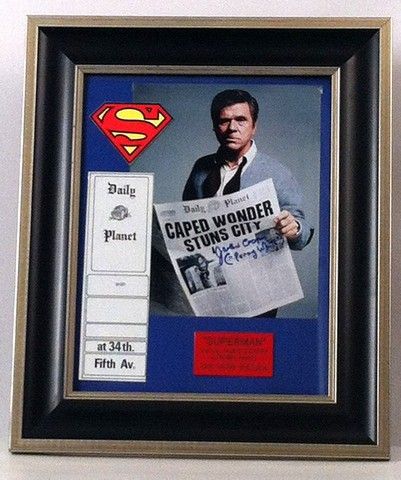 From what many believe to be the best of all the "Superman" reincarnations on the big screen, this is a unique collectable from the 1978 Christopher Reeve version. it begins with a rare autograph photo of the legendary actor Jackie Cooper in his role as the Editor-in-Chief of the Metropolis newspaper, the Daily Planet, as well as a screen used "buck sheet" from the Daily Planet newsroom set. Comes with a COA from Piece of the Past, Inc. for the autograph, and another COA from the Prop Shop for the stationary. Beautifully matted and framed. Frame is approx. 16" x 18"