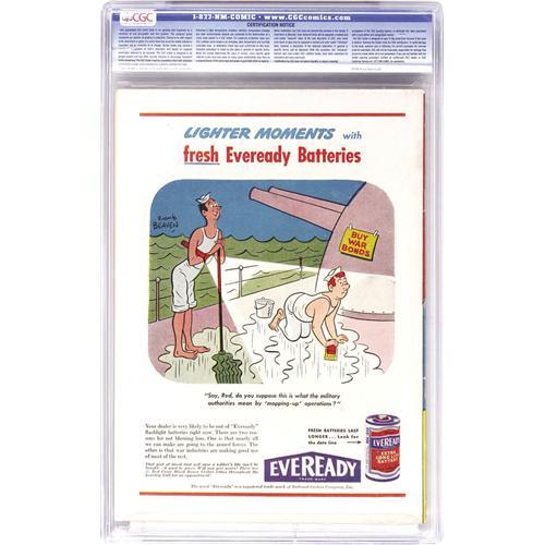 48C. COMICS – Comic books sold referencing a third-party grading service are sold "as is" without any express or implied warranty. Certain warranties may be available from the grading services and the Bidder is referred to them for further details: Comics Guaranty Corporation (CGC), P.O. Box 4738, Sarasota, FL 34230. Subject to sections 57 and 58, bidders who intend to challenge authenticity or provenance of a lot must notify Auctioneer in writing within thirty (30) days of the Auction's conclusion. Auctioneer's maximum liability shall not exceed the high bid on that lot, which bid shall be deemed for all purposes the value of the lot. In the event Auctioneer cannot deliver the lot or subsequently it is established that the lot lacks title, provenance, authenticity, or other transfer or condition issue is claimed, Auctioneer's liability shall be limited to recission of sale and refund of purchase price. After one year has elapsed, Auctioneer's maximum liability shall be limited to any commissions and fees Auctioneer earned on that lot.