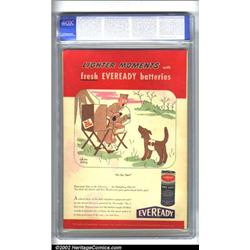 Superman #35 (DC, 1945) CGC VF 8.0 Off-white to white pages. This is a high-grade book with great page quality and a rare cover appearance by Lois Lane. The solid background makes this one particularly tough in this kind of grade. The solid red is unbroken, and really stands out. Overstreet 2002 VF 8.0 value = $625. Important notice: We expect to be auctioning lots at the rate of 200-250 per hour. Sometimes eBay Premier live bid software cannot keep up with that pace, so we strongly recommend that you place a realistic proxy bid now as insurance to avoid disappointment. Also please note that all Heritage/CAA lots purchased through eBay Premier carry a 20% Buyer's Premium.