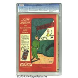 <table><tr><td><TABLE cellSpacing=0 cellPadding=0 width="100%" bgColor=#000000 border=0><TBODY> <TR><TD width="100%"><TABLE cellSpacing=1 cellPadding=3 width="100%" border=0><TBODY><TR><TD width="100%" bgColor=#79735c><FONT face=arial color=#ffffff size=3><B>Description</B> </FONT></TD></TR><TR><TD width="100%" bgColor=#ffffff><FONT face=arial size=2><B>Superman #40 (DC, 1946) CGC VF- 7.5 Cream to off-white pages.</B></I> One of our favorite Wayne Boring covers has Supes pondering whether it would be wrong to send Mr. Mxyztplk and super-brat Susie to another county with a flick of his finger. Three copies have received higher grades from CGC to date. Overstreet 2003 VF 8.0 value = $625. <B>Estimate: $500-up</B> </FONT></TD></TR></TBODY></TABLE></TD></TR></TBODY></TABLE><BR><!--<a name="PricesRealized"></a> <table width="100%" border="0" cellspacing="0" cellpadding="0" bgcolor="#000000"> <tr> <td width="100%"> <table width="100%" border="0" cellspacing="1" cellpadding="3"> <tr> <td width="100%" bgcolor="#79735C"> <a name="PR"> <font face="arial" size="3" color="#FFFFFF"> <b>Previous Prices from Heritage Auctions</b> </td> </tr> <tr> <td bgcolor="#F6F6ED"> No Prior Data Recorded </td> </tr> <tr> <td bgcolor="#FFFFFF"> <font face="arial" size="1""> PLEASE NOTE: All prices realized reflect the final hammer price PLUS the buyer's premium in auctions that charge a buyer's premium. Each item has a notation at the top of the listing indicating whether that lot included a buyer's premium. Example: A item that sells with a final hammer price of $100 and a 15% buyer's premium will display with a price realized of $115. All information listed is intended to be as accurate as possible, but errors are possible. Please use this guide carefully and inform us of any inaccuracies. </td> </tr> </table> </td> </tr> </table>