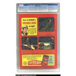 Superman #44 (DC, 1947) CGC NM 9.4 White pages. The Man of Steel is challenged by Toyman and his miniature minions on this Wayne Boring cover. Ira Yarbrough provides the interior art for this issue, and William Shakespeare(!) makes a guest appearance with Superman in one of the back-up stories. To date, this is the highest CGC-graded copy of this issue. If you're a collector who wants the very best, then this is the comic for you. Overstreet 2003 NM 9.4 value = $925. Important notice: Heritage usually auctions material at the rate of 200-250 lots per hour. On some occasions eBay Live bid software or the Internet may not be able to keep up with the pace of the auction. We recommend placing a realistic absentee bid now as insurance to avoid disappointment. Occasionally the auctioneer may eliminate or reject an eBay Live bid, and the auctioneer may also reopen a lot after the close of the eBay live bidding (usually because we missed an audience bid), and may reject your bid even if it shows you as the winning bidder. By bidding via eBay Live, you agree that Heritage may award the lot to another bidder at its sole discretion under the circumstances described above or any other reasonable circumstances. Also please note that all Heritage lots purchased through eBay Live carry a 20% Buyer's Premium. Please make sure you read the Terms and Conditions before you bid.