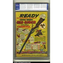 Superman #6 (DC, 1940) CGC FN- 5.5 Off-white pages. Superman assumes a classic pose on the cool cover of this early issue, that has the appearance of a signed photo. These early issues are really getting difficult to find in any grade. This issue features the first splash page in a Superman comic, and is a nice looking, mid-grade book. It is free from glaring defects, though the centerfold is detached. Overstreet 2002 FN 6.0 value = $900. Important notice: We expect to be auctioning lots at the rate of 200-250 per hour. Sometimes eBay Premier live bid software cannot keep up with that pace, so we strongly recommend that you place a realistic proxy bid now as insurance to avoid disappointment. Also please note that all Heritage/CAA lots purchased through eBay Premier carry a 20% Buyer's Premium.