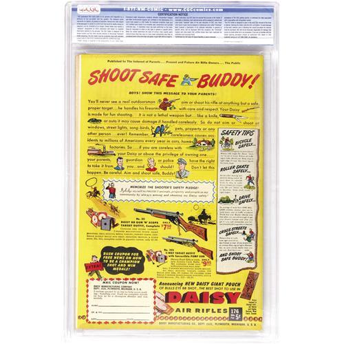 50. Since we cannot examine encapsulated notes or comics, they are sold "as is" without our grading opinion, and may not be returned for any reason. Auctioneer shall not be liable for any patent or latent defect or controversy pertaining to or arising from any encapsulated collectible. In any such instance, purchaser's remedy, if any, shall be solely against the service certifying the collectible.
