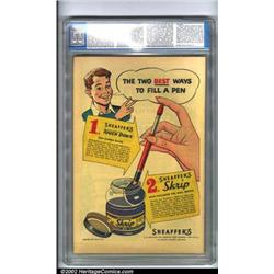 Superman #76 (DC, 1952). The first time Superman and Batman learn each other's secret identities, as well as the first time Batman crossed over into Superman's regular title. Nice copy with just a small amount of wear on bottom of spine. CGC VF 8.0 Cream to off-white pages. Overstreet 2001 FN 6.0 value = $505. NM 9.4 value = $1,600. Important notice: We expect to be auctioning lots at the rate of 200-250 per hour. Sometimes eBay Premier live bid software cannot keep up with that pace, so we strongly recommend that you place a realistic proxy bid now as insurance to avoid disappointment. Also please note that all Heritage/CAA lots purchased through eBay Premier carry a 20% Buyer's Premium.