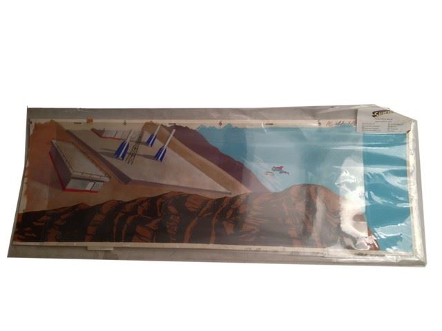 "Superman" Animation Pan (featuring "Superman" and "Superdog" flying over a missile base / includes original hand painted background / Filmation Studios / 1974 / 30.5" x 9")