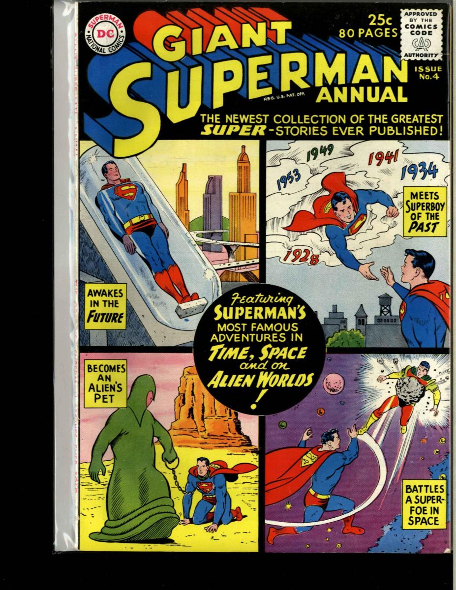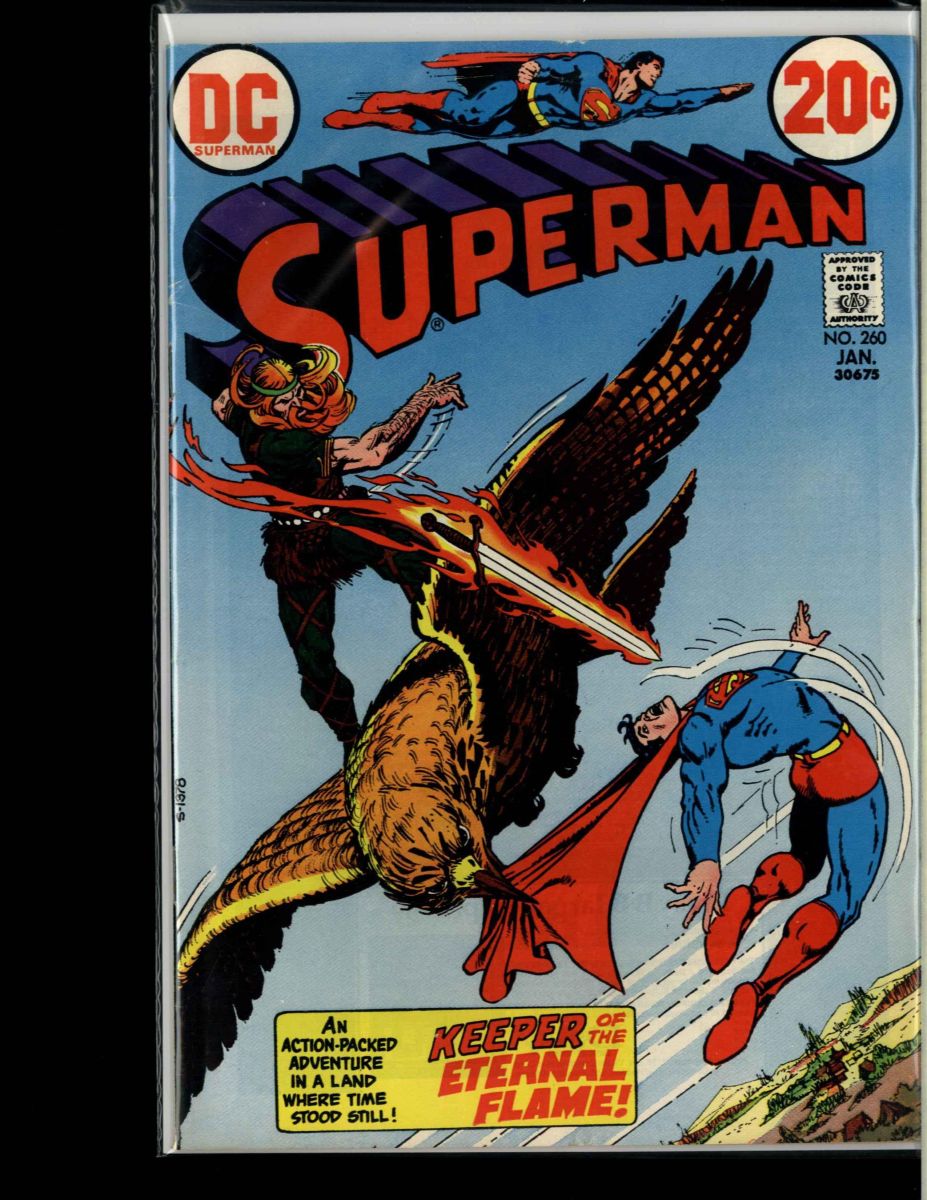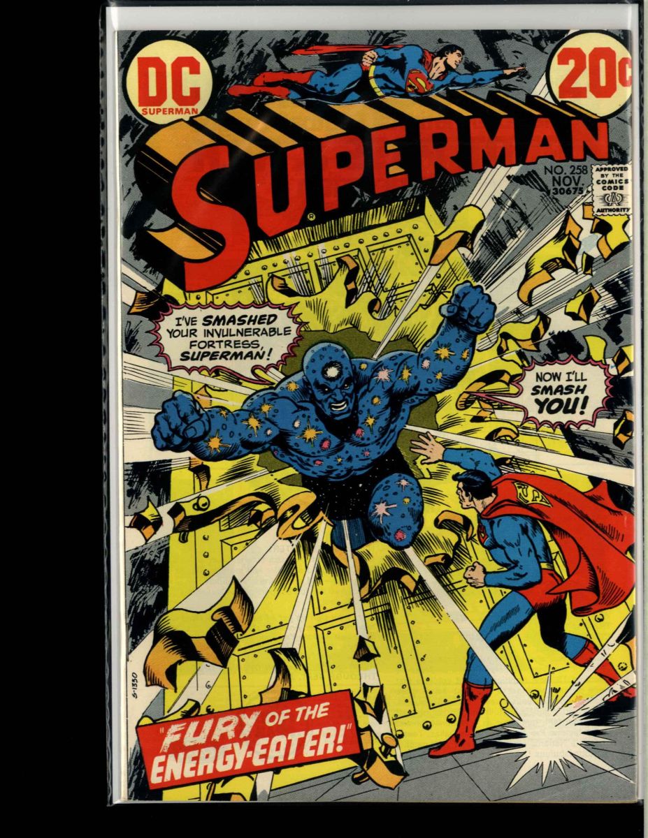 Superman #249 (x2), 250-251, 254, 257, 258, 260, 262, 270, 271, 276, 279, 303, Giant Superman Annual #4, 6. 16 issues total. Average condition ranges from VG+ to VF-