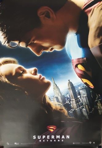 Superman Returns (2006) rolled poster featuring Brandon Routh and Kate Bosworth as Lois Lane (27"x41"). Rippled edges.